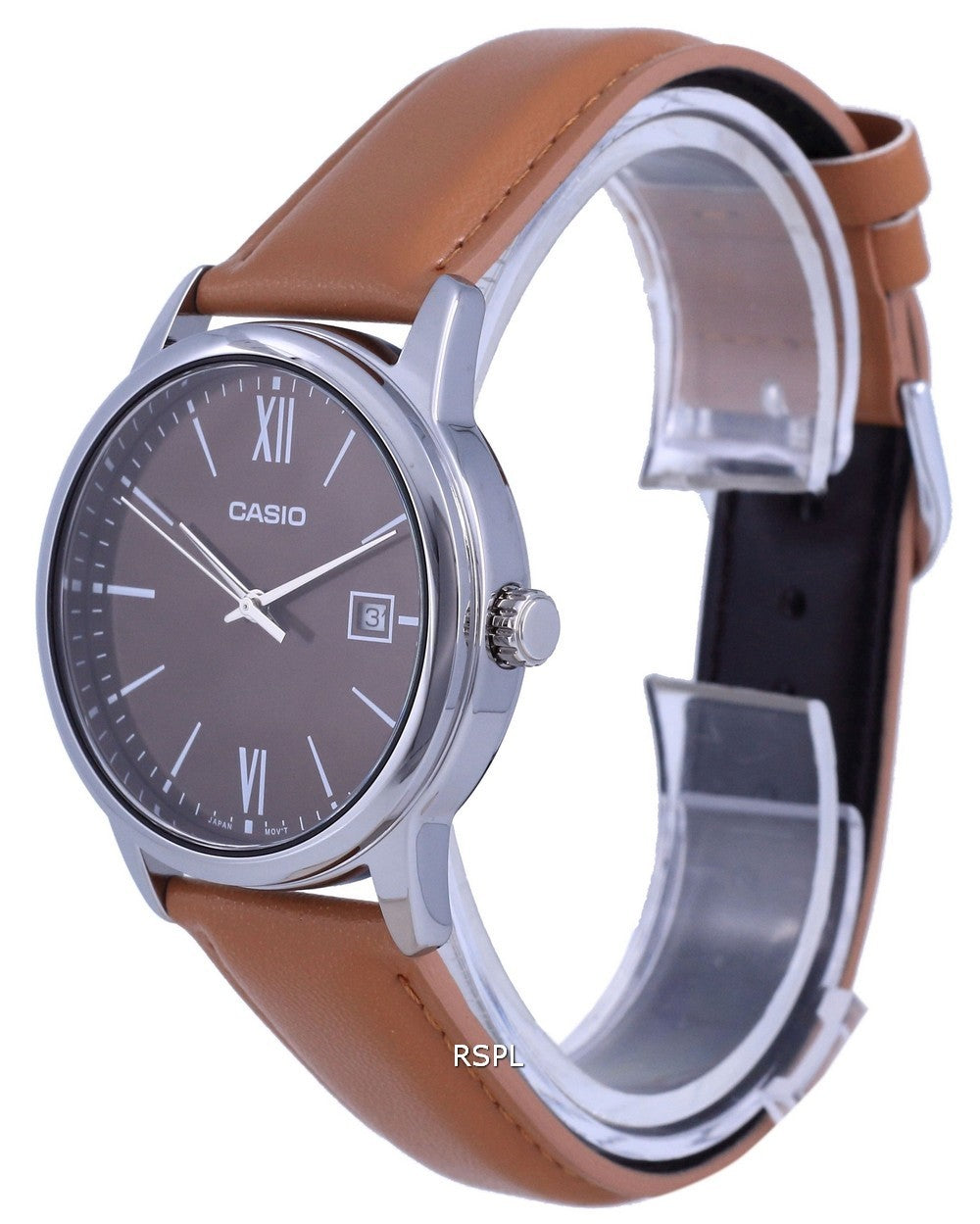 Casio Maroon Dial Stainless Steel Analog Quartz MTP-V002L-5B3 MTPV002L-5 Mens Watch