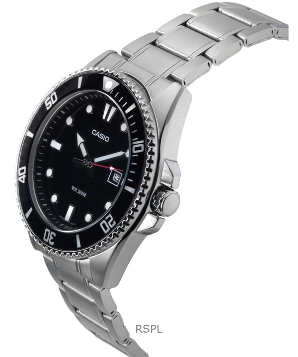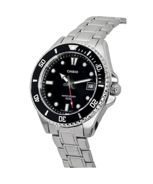 Casio Standard Analog Stainless Steel Black Dial Quartz MDV-107D-1A1 200M Mens Watch