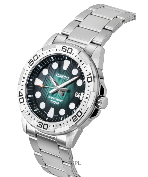 Casio Standard Analog Stainless Steel Green Dial Quartz MTD-140D-3AV 100M Men's Watch