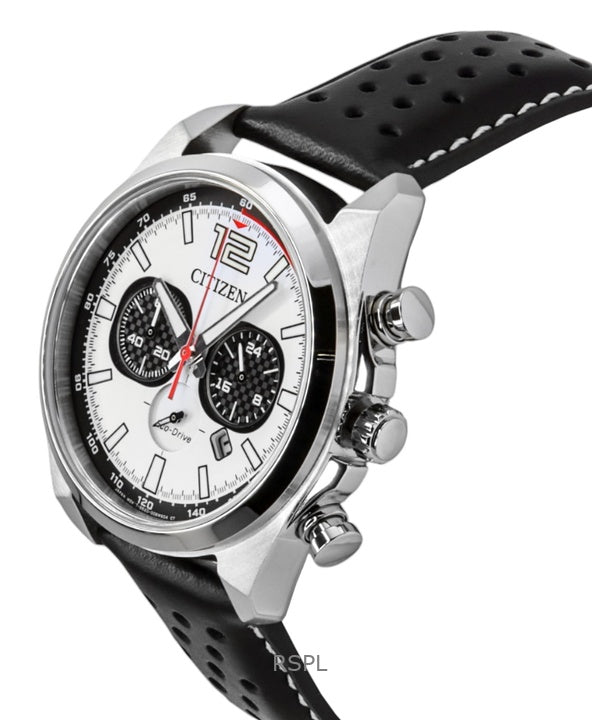 Citizen Eco-Drive Chronograph Leather Strap White Dial CA4640-09A 100M Men's Watch