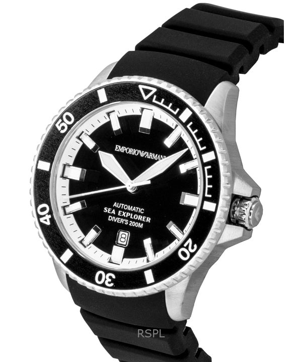 Emporio Armani Sea Explorer Silicone Strap Black Dial Diver's Automatic AR60086 200M Men's Watch