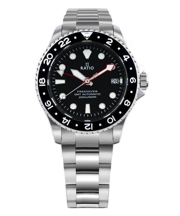 Ratio FreeDiver GMT Series Sapphire Stainless Steel Black Dial Automatic RTF051 200M Men's Watch