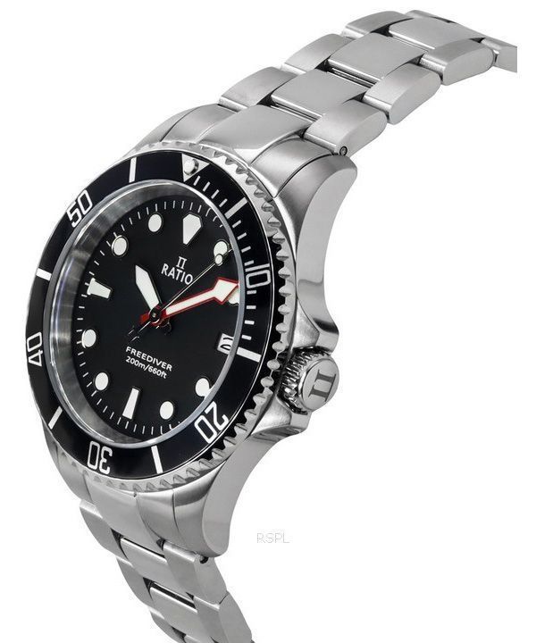 Ratio FreeDiver Sapphire Stainless Steel Black Dial Quartz RTF031 200M Men's Watch