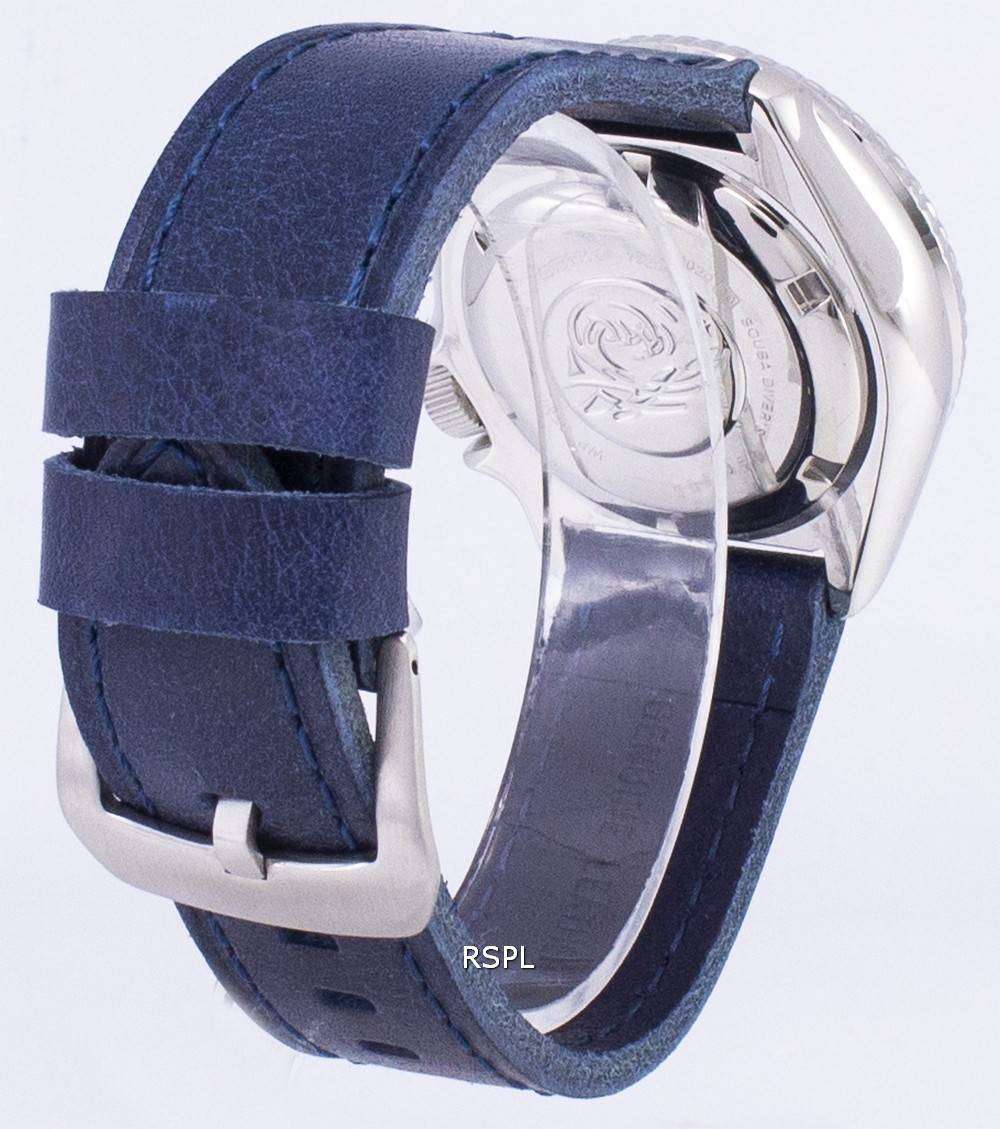 Seiko Automatic SKX009K1-LS13 Diver's 200M Dark Blue Leather Strap Men's Watch