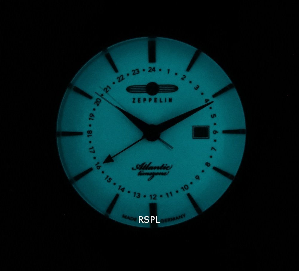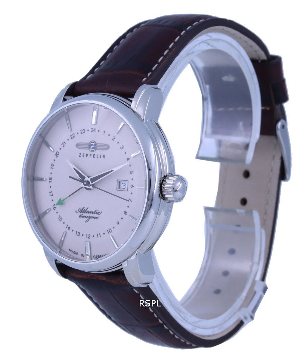 Zeppelin Atlantic Beige Dial Leather Strap Quartz 8442-5 84425 Men's Watch