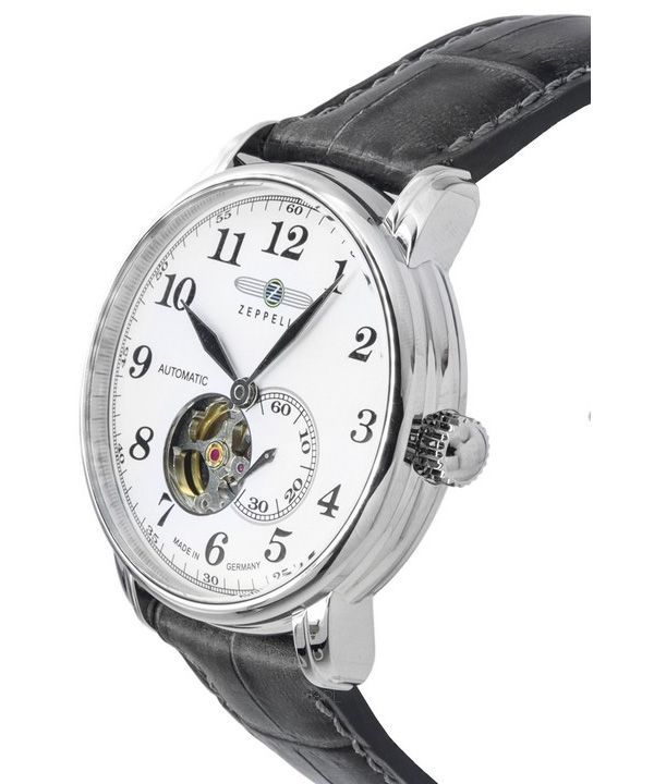 Zeppelin LZ127 Graf Leather Strap White Open Heart Dial Automatic 76661 Men's Watch