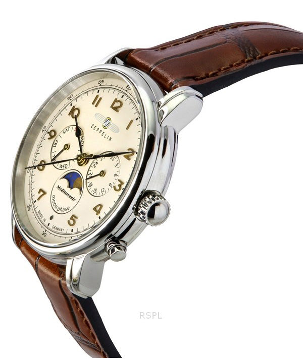 Zeppelin Mediterranean Moon Phase Leather Strap Beige Dial Quartz 96365 Men's Watch